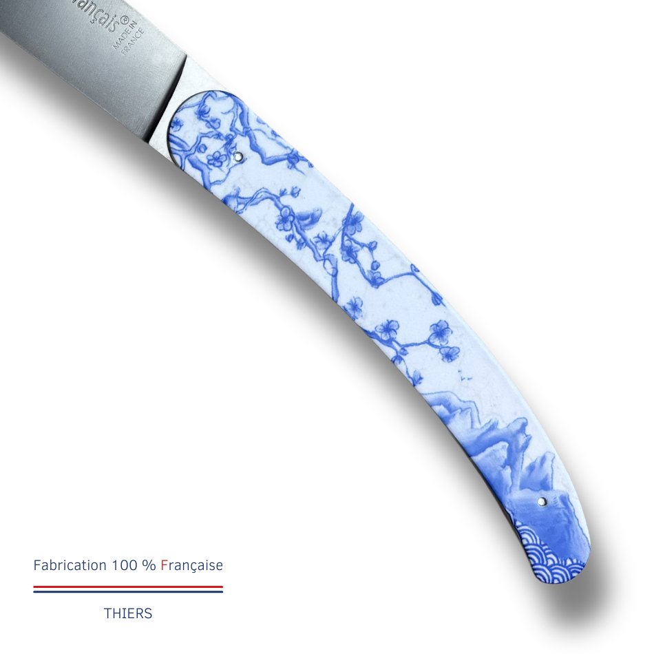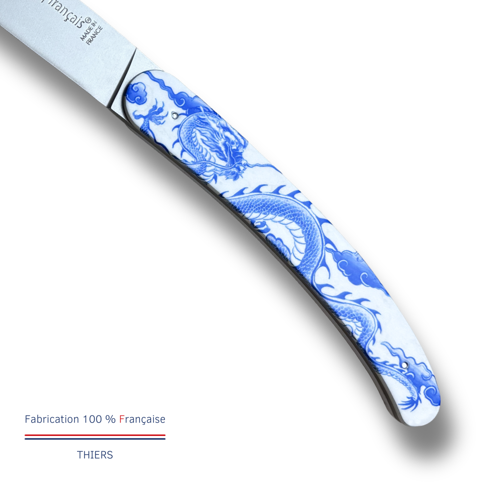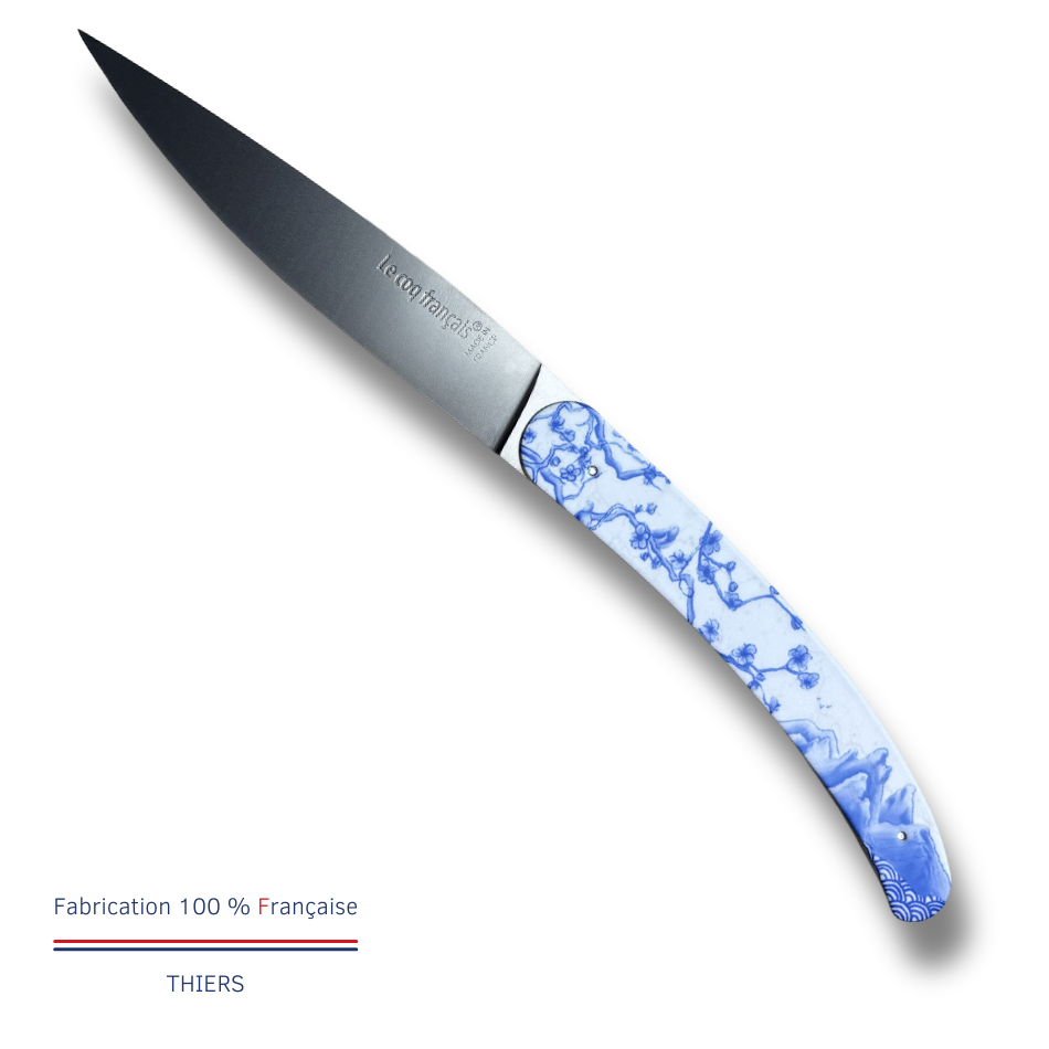 La lame des couteaux Le Coq Français est forgée en acier inox Z40C13, offrant une finition satinée élégante et durable. Pour ce coffret exclusif, nous avons délaissé le bois traditionnel au profit d’un manche en acrylique blanc immaculé, offrant un rendu moderne et une douceur au toucher incomparable. Contrairement aux gravures classiques, ces modèles arborent des graphismes éclatants grâce à la sublimation en couleurs. Cette technique rare sur des manches de couteaux permet d’imprégner les pigments directement dans la matière pour un résultat vibrant, précis et résistant. Chaque manche devient ainsi une véritable œuvre d’art colorée.