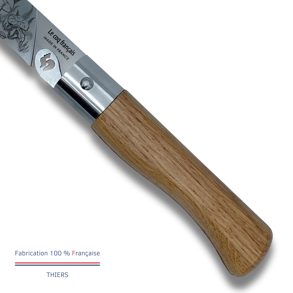 Ce couteau pliant incarne les engagements du Coq Français pour la fabrication locale et artisanale.