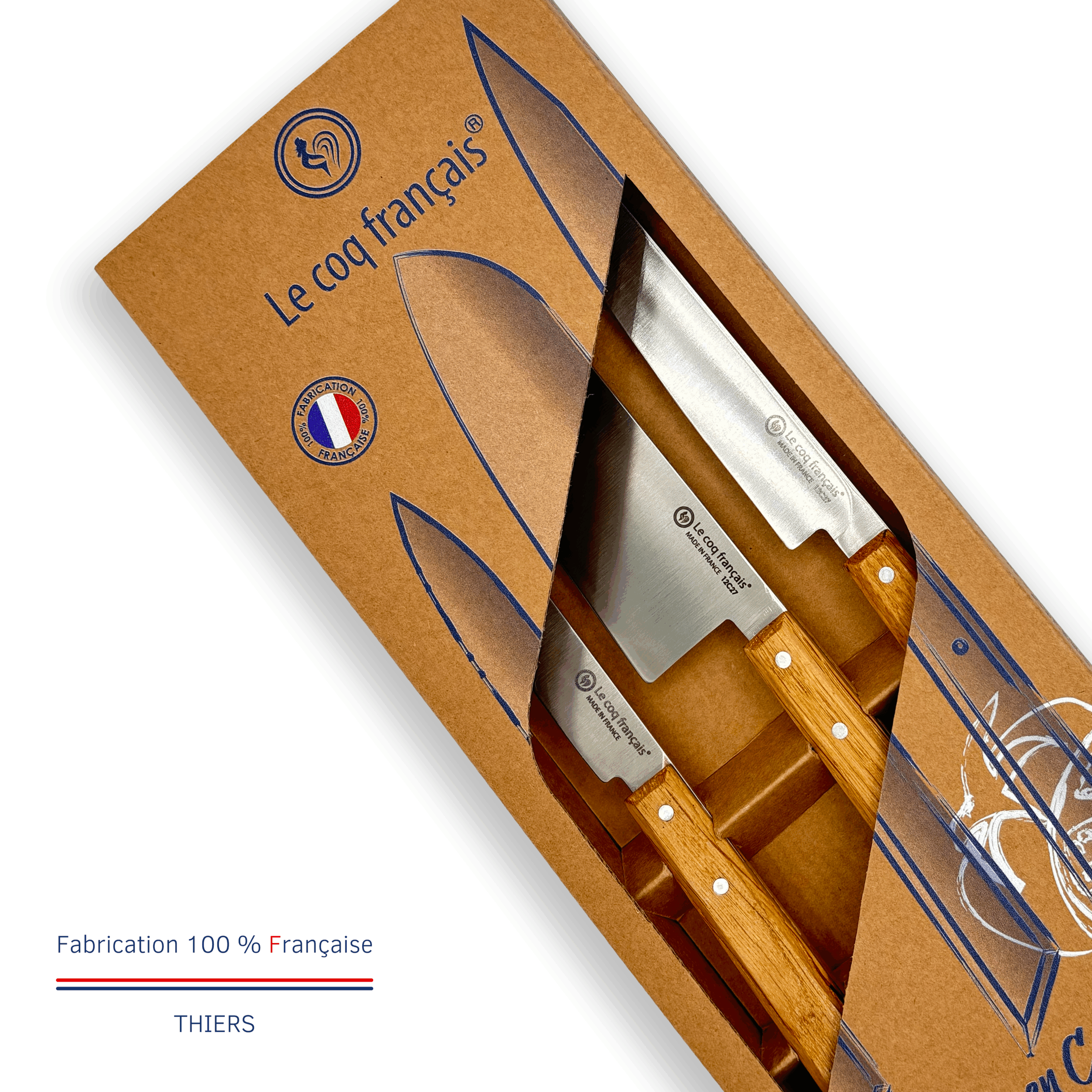 Ce coffret Le Coq en Cuisine incarne l’essentiel du tranchant français. Trois couteaux complémentaires, fabriqués en France avec des matériaux premium, pour accompagner chaque moment en cuisine avec plaisir, performance et simplicité.