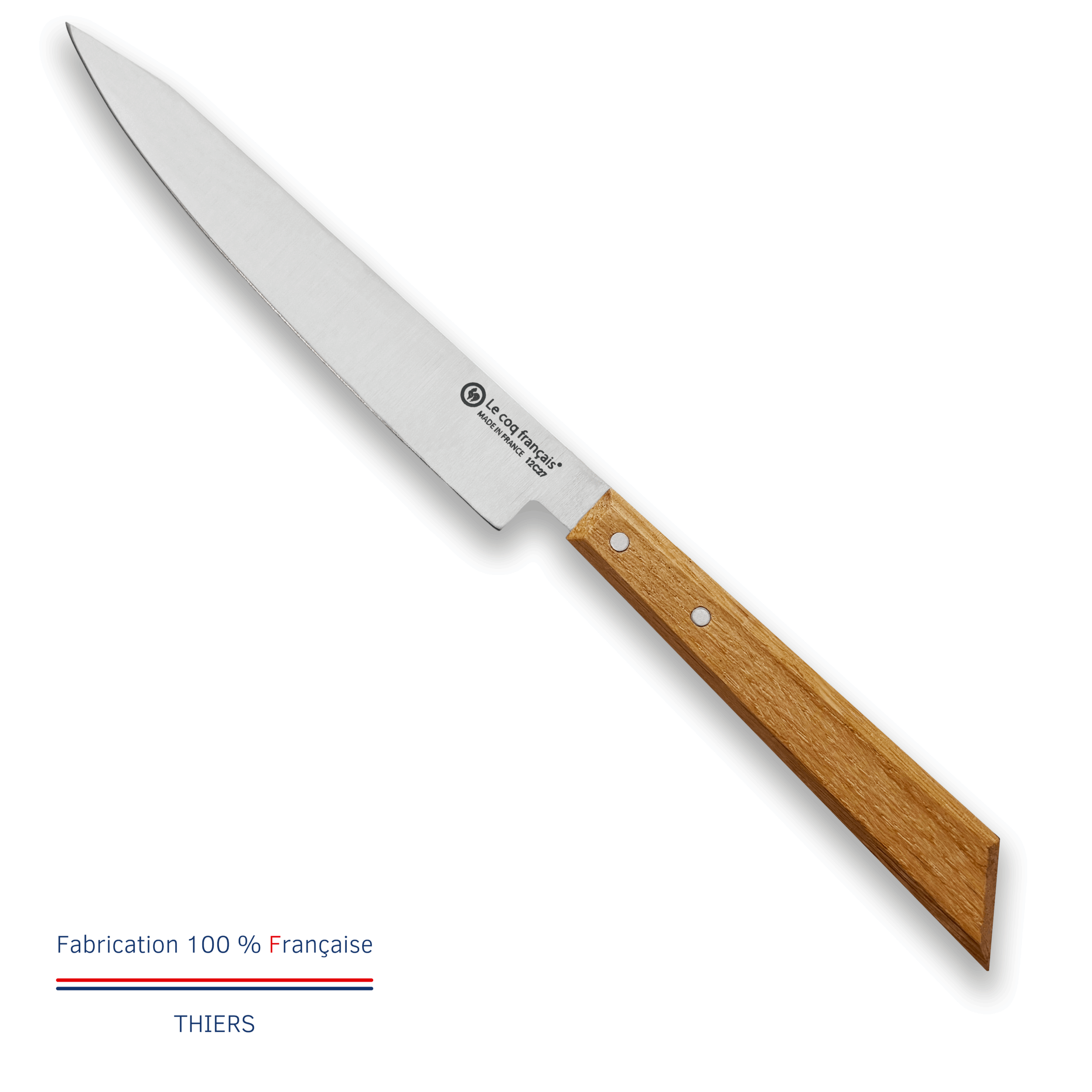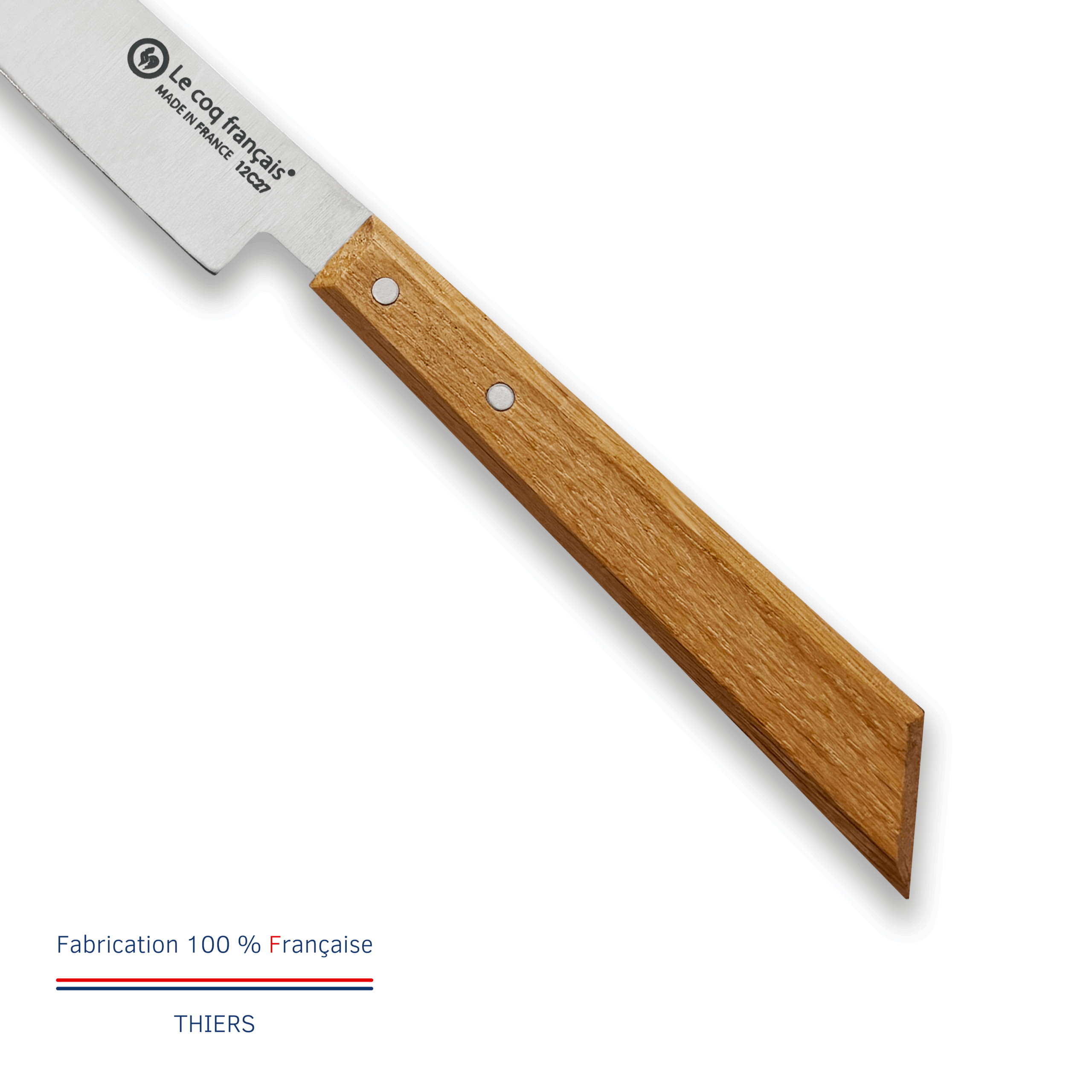 Le veinage naturel du bois de chêne rend chaque manche unique. Un couteau à la fois authentique et technique, au service de vos préparations culinaires.